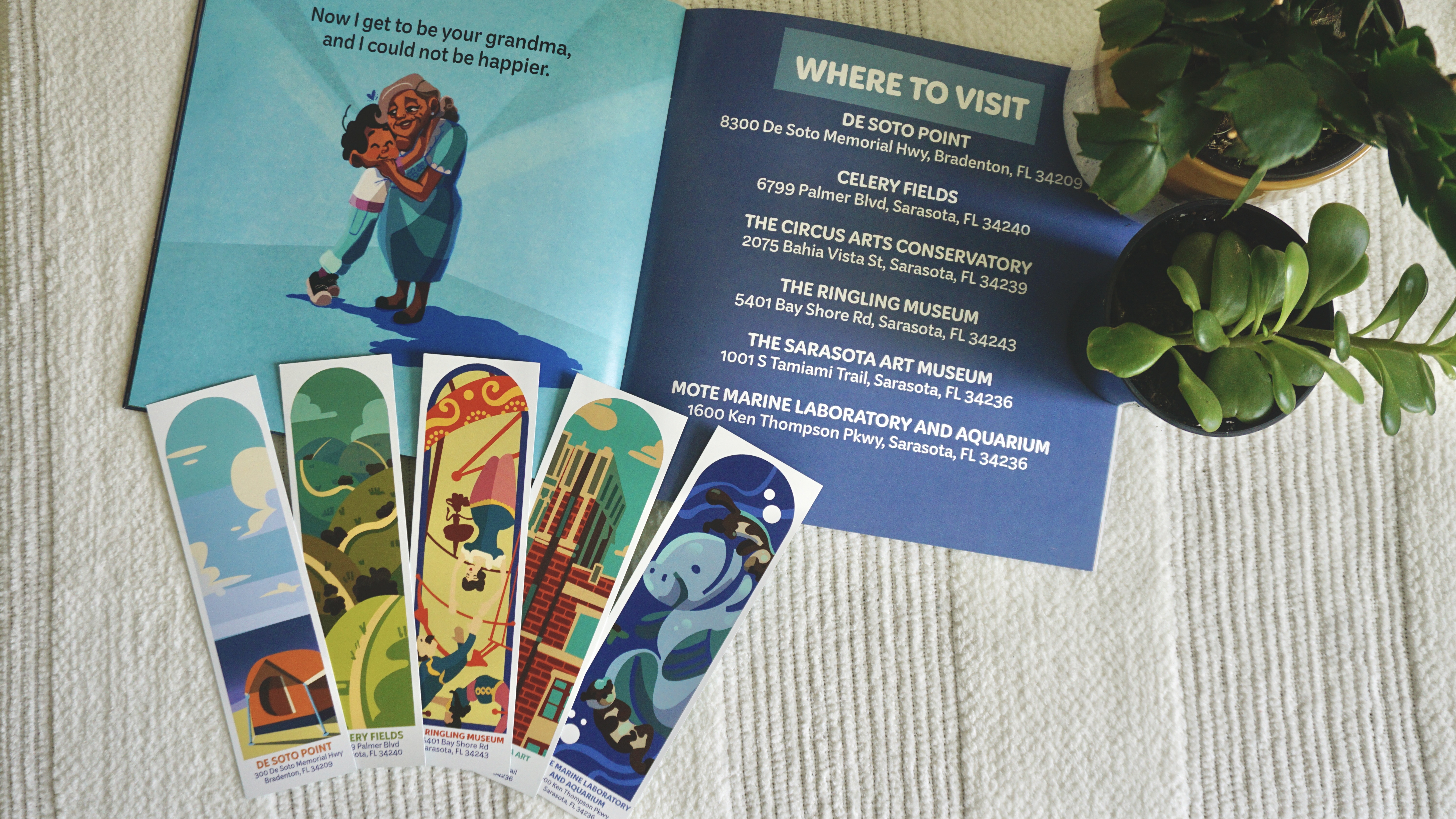 Logo, picture book, bookmarks, banners, poster from original concept. Programs used include Photoshop, Illustrator, Indesign.