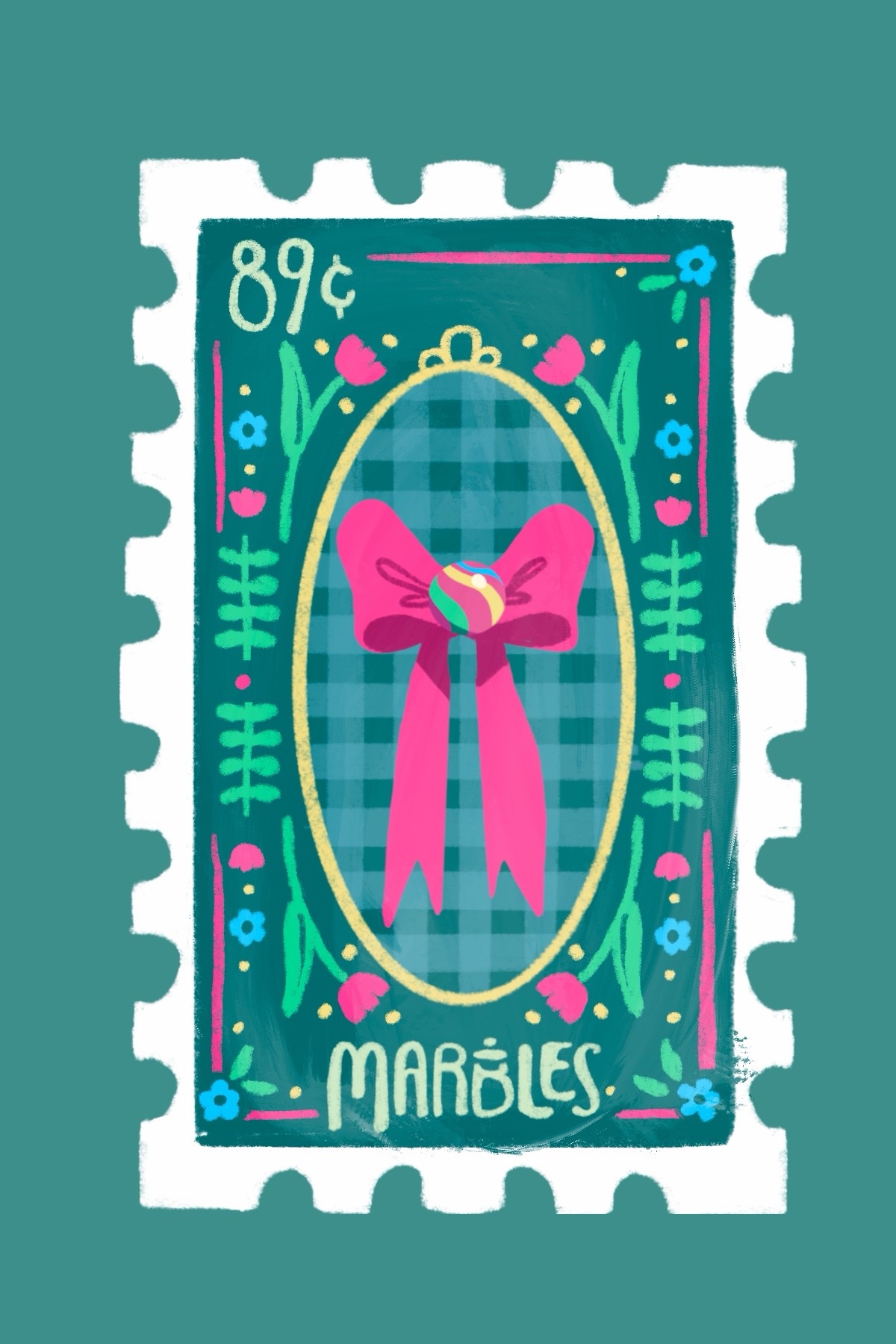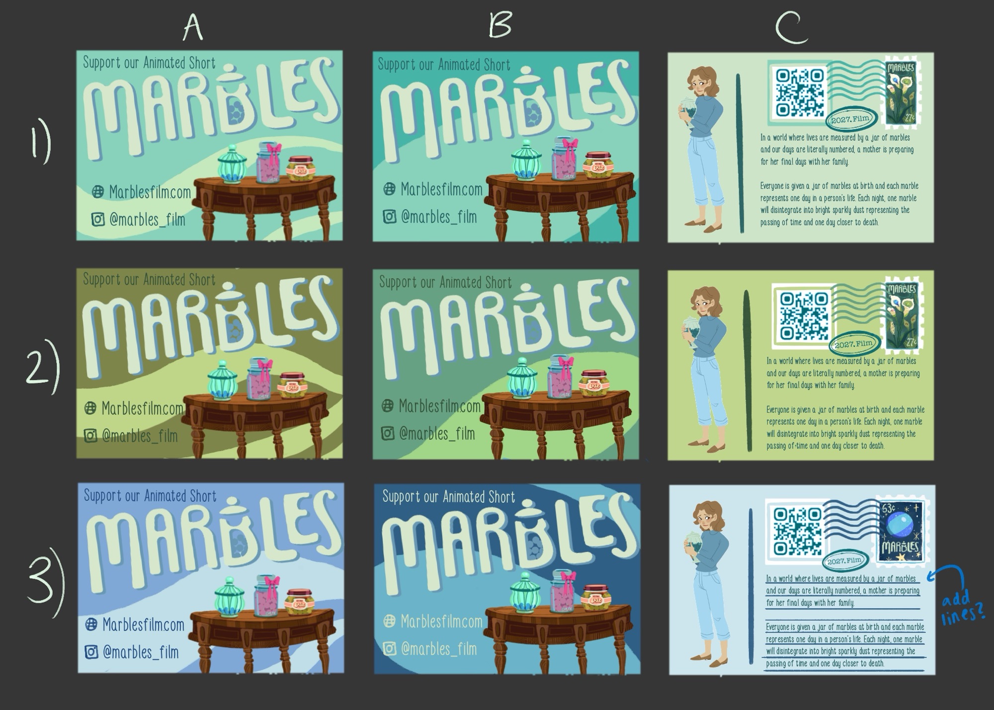 Original logo designed for the animated short film “Marbles” created by Danielle Olson. Final color palette and vector image used throughout production. Additional marketing materials created include postcard and stickers.