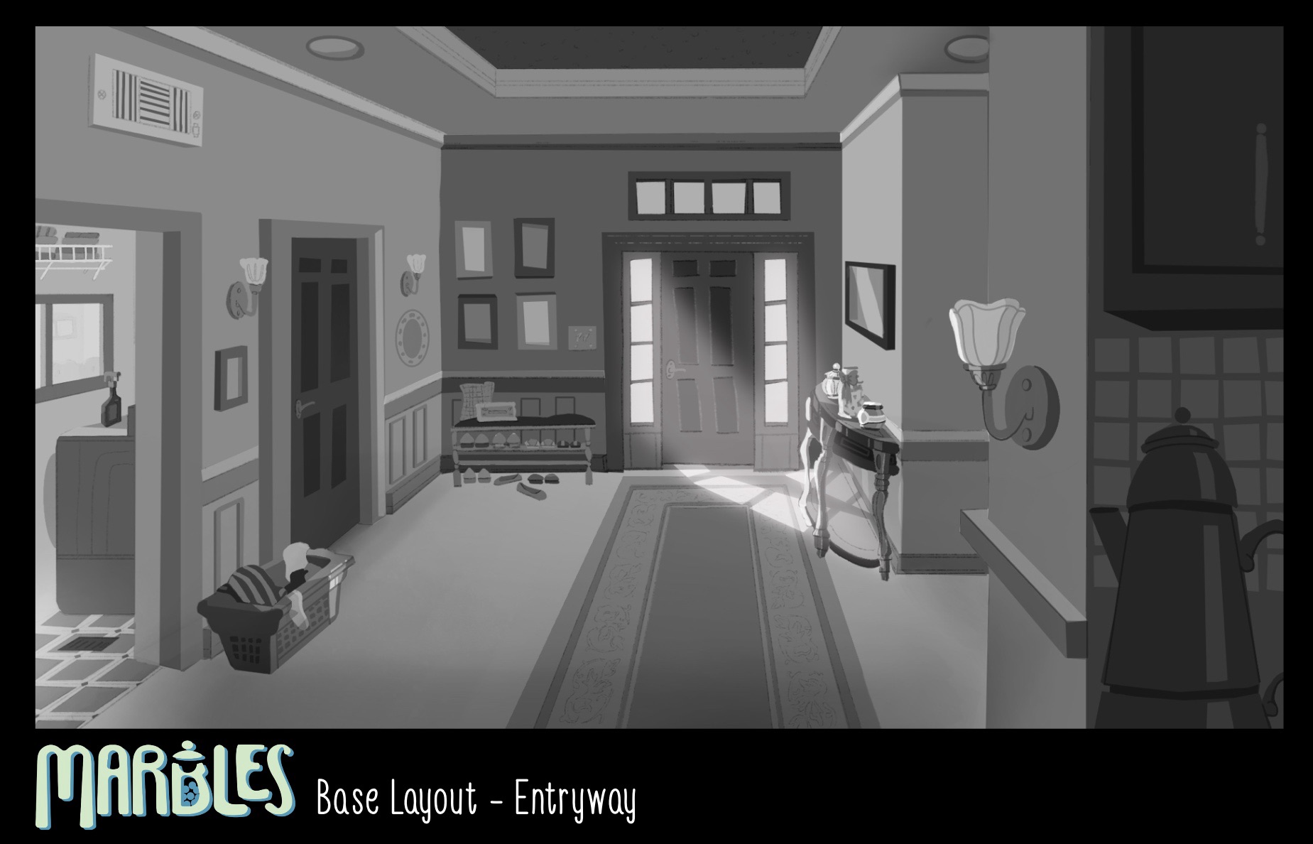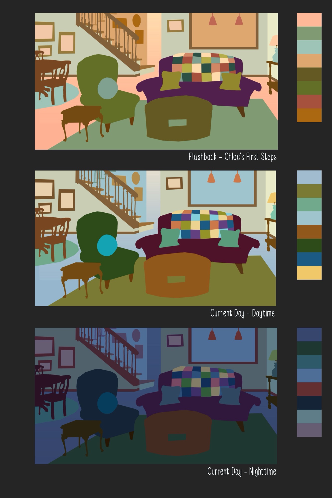 2D Animated Short Film created by Danielle Olson. In a world where lives are measured by a jar of marbles and our days are literally numbered, a woman is preparing for her final days with her family. Original prop design, color keys, and background layout.