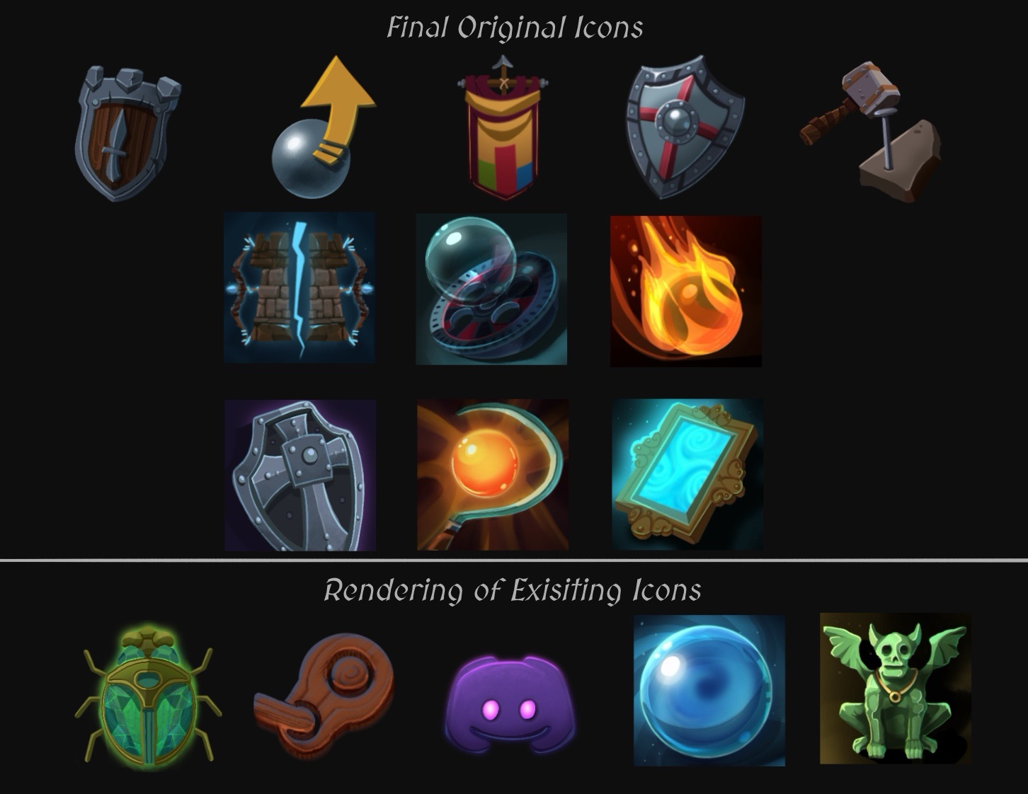 Online, roguelike video game created by Meteor Forge. UI/UX icon designs to be used throughout the game.